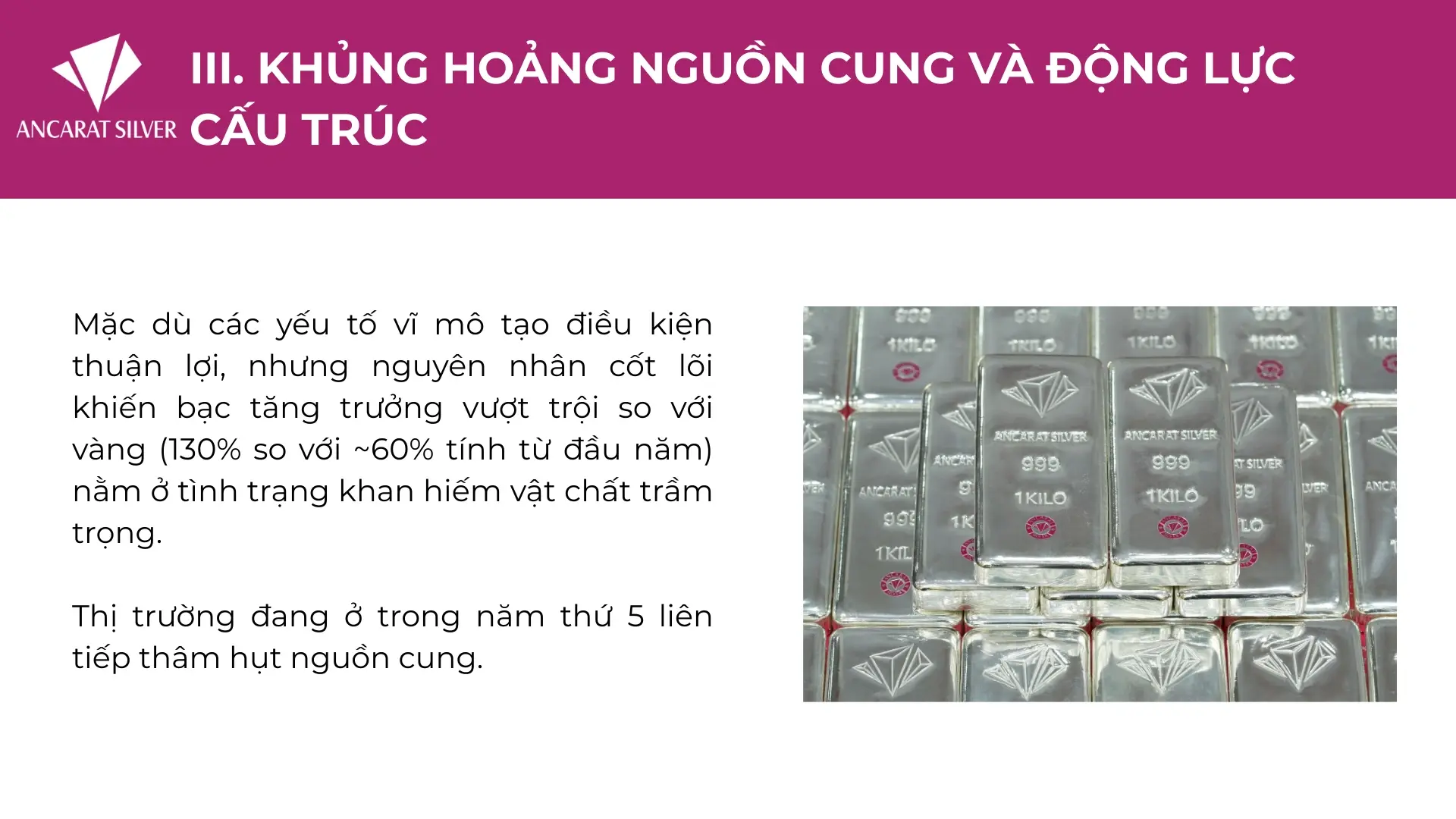 Sự mất cân bằng cung - cầu cấu trúc này được dự báo sẽ còn kéo dài ít nhất đến hết năm 2026, giữ cho giá bạc ở mức cao bền vững và biến các đợt điều chỉnh trở thành cơ hội tích lũy hiếm có.