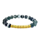 Vòng đá ưu linh xanh 11mm phối Charm Vàng 24K Mạn Đà La
