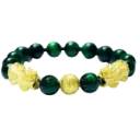 Vòng đá Mắt hổ xanh lá phối vàng 24k tỳ hưu và hột kim tiền