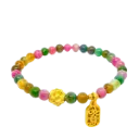 Vòng Đá Tourmaline phối Charm Vàng Hoa sen mix Mặt dây Như ý cát tường