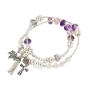 Vòng tay đá Super Seven phối charm bạc nụ hoa