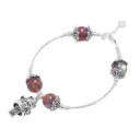 Vòng tay đá Thạch anh dâu phối Chuông bạc Mèo mix bạc